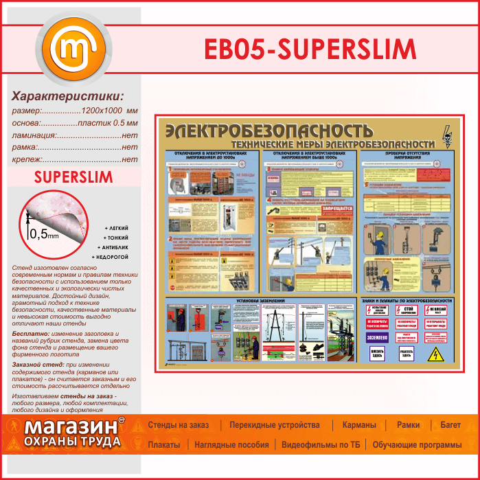 Стенд «Электробезопасность. Технические меры электробезопасности» (EB-05-SUPERSLIM) в Ярославле купить