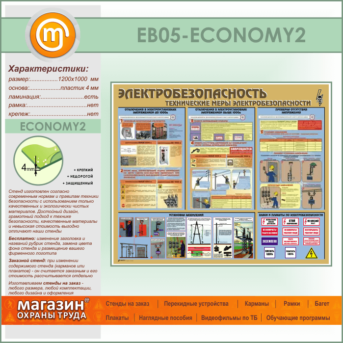 Стенд «Электробезопасность. Технические меры электробезопасности» (EB-05-ECONOMY2) в Ярославле купить